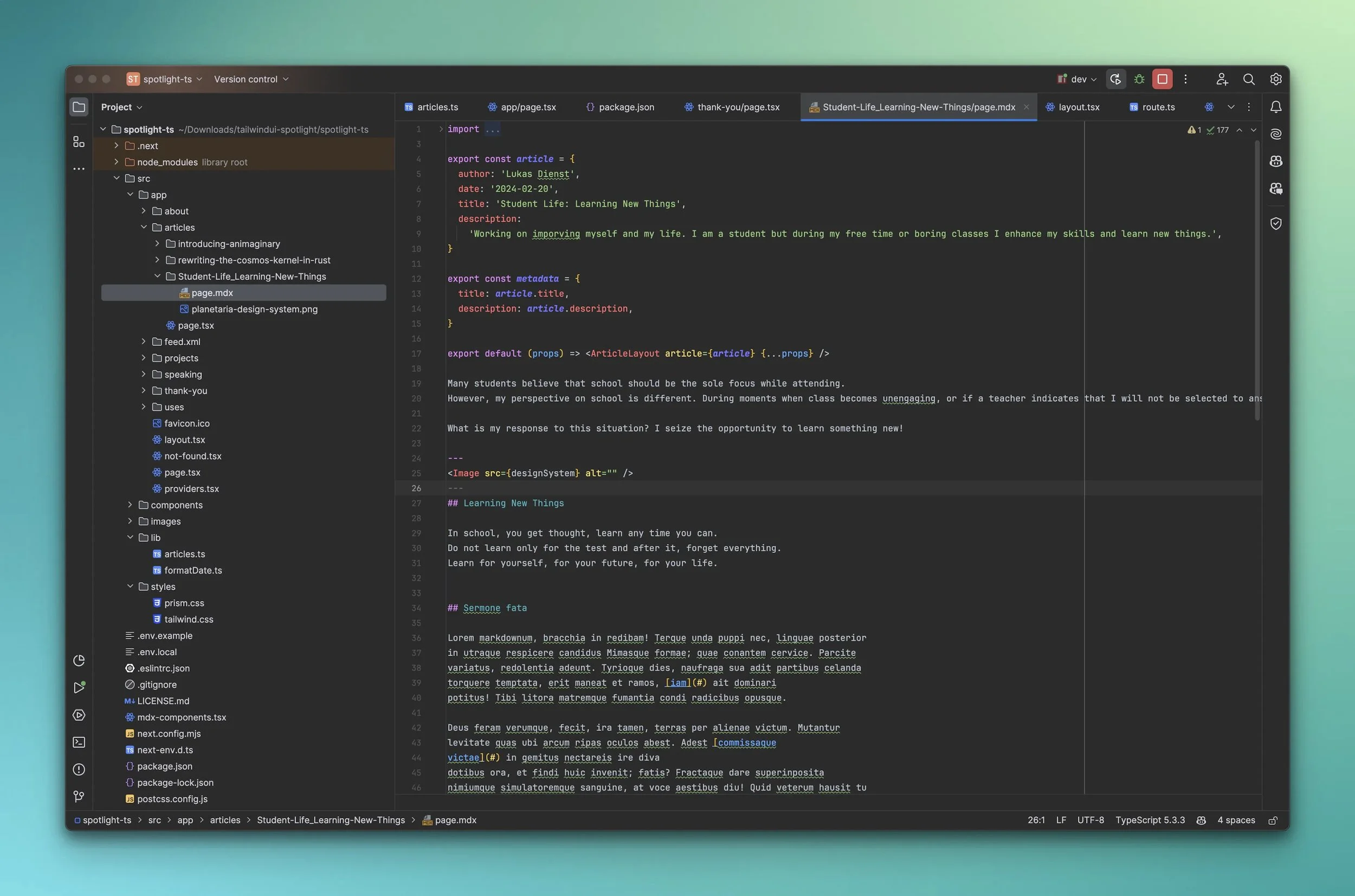 <h1 className="text-4xl font-bold tracking-tight text-zinc-800 sm:text-5xl dark:text-zinc-100"> Student, upcoming practical computer science student, entrepreneur, and coffee lover. </h1>